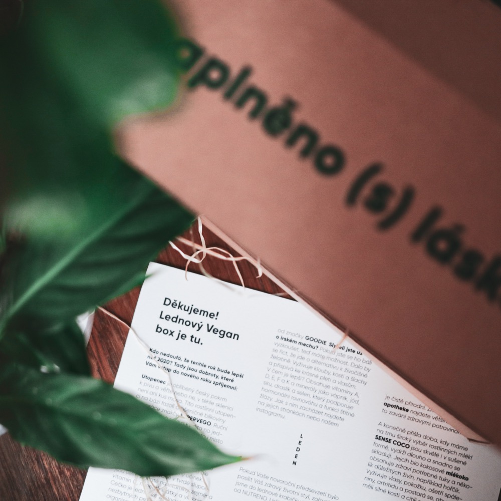 Vegan box je plný produktů (cca 5-8 ks), který může zákazník odebírat jako měsíční předplatné, ale lze jej zakoupit i jednorázově.