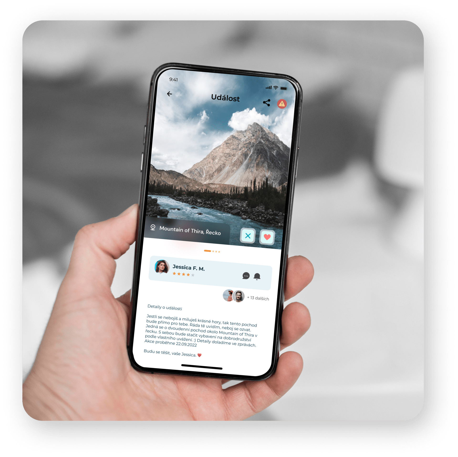 Po stažení aplikace se zaregistrujete a vyplníte potřebné informace v profilu. Poté se dostanete na hlavní obrazovku, kde jsou události, které můžete vidět v grafickém zpracování aplikace níže. Události se budou zobrazovat podle vašich preferencí. Pokud se vám nějaká z nich zalíbí, tak o ni můžete projevit zájem a poté vás kontaktuje tvůrce události, pak už je to jen na domluvě mezi vámi. Samozřejmě pro ty z vás, kteří máte nějaký koníček a hledáte parťáka, je tu i možnost si vytvořit vlastní událost, na kterou budou moci ostatní reagovat. Bude tedy pouze na vás, jakého kandidáta na dobrodružství si vyberete. Teď už stačí jen vyjít ven a užívat si život.