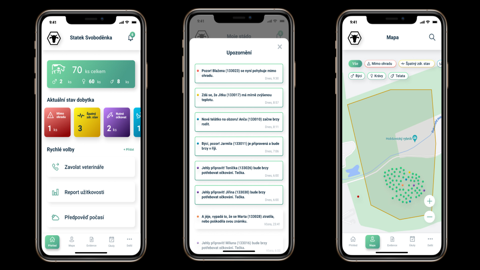 Chovateli tak stačí sledovat aplikaci bez toho, aniž by se musel fyzicky dostavit na pastvinu a tam všechna zvířata zkontrolovat osobně.