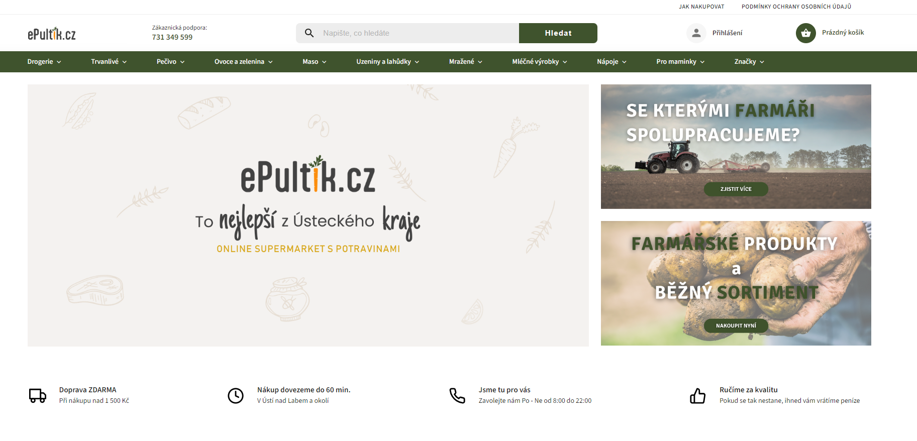 ePultik.cz není jen klasický online supermarket, který jste si nejspíše představili. Je to hlavně online obchod, který nabízí stovky farmářských výrobků z Ústeckého kraje a v budoucnu i z dalších krajů, ale nabízí také tradiční výrobky, které naleznete v běžných kamenných prodejnách, proto abychom dokázali uspokojit potřeby většiny obyvatel. Máme 2 hlavní cíle a hodnoty, kterých se chceme během provozu držet. Tím prvním je být férovým parťákem pro lokální farmáře a výrobce, na kterého je vždy spoleh a nestrhne je z kůže a druhým cílem je nabídnou každému obyvateli i v té nejmenší vesničce jeho kraje, to nejlepší co se v daném kraji nabízí, aby nemusel kvůli čerstvému a křupavému pečivu obětovat svůj drahocenný čas a těžce vydělané peníze za nákupy v kamenných prodejnách. Na co se k nám budou dovážet jogurty například z Olomouce, když jogurty vyrábí v mnohem lepší kvalitě zdejší farmáři mnohdy za zlomek ceny, na který jste zvyklí kdekoliv jinde. A takto bychom mohli pokračovat.