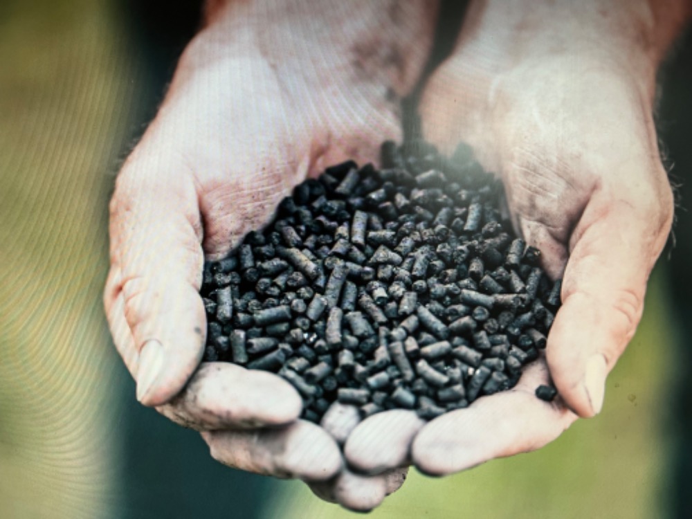 Pevné hnojivo Vermikchar - v sypké formě nebo ve formě granulek, také z těchto materiálů, kde biouhel je už aktivní po vyluhování z vermikompostem.
