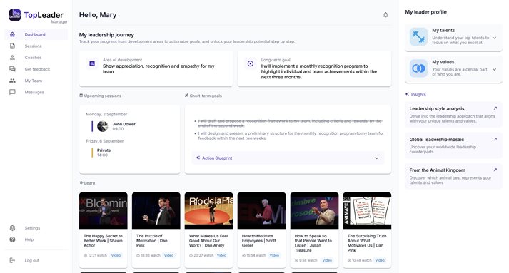 Platforma TopLeader není jen o propojení uživatelů s certifikovanými kouči – ačkoli to je její významná součást. I bez osobního kouče je platforma navržena tak, aby uživatelům poskytovala hodnotné a praktické nástroje pro jejich růst. Spojení digitálního a lidského přístupu činí TopLeader jedinečným nástrojem na trhu, který přináší komplexní a škálovatelné řešení pro moderní leadership.