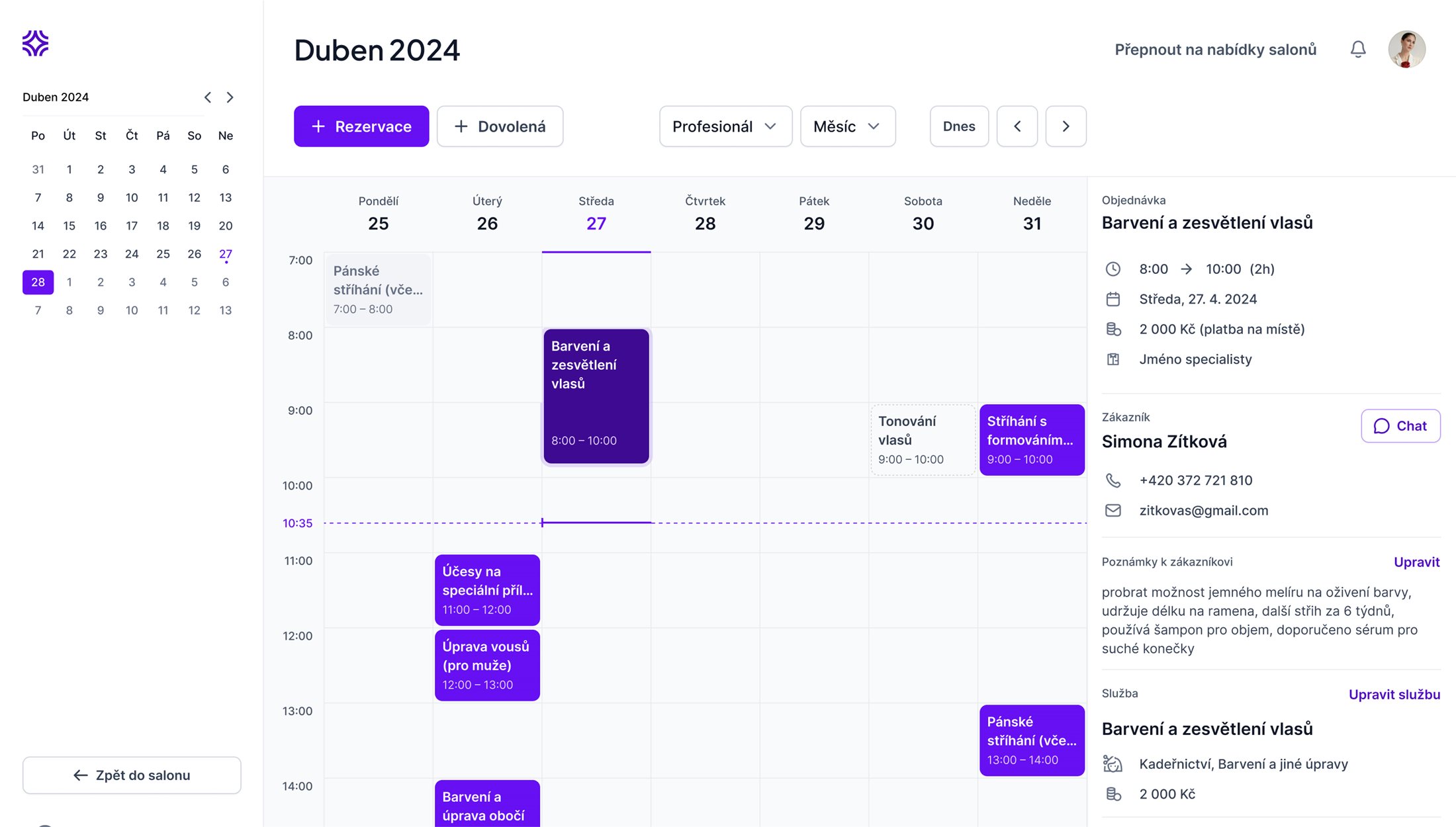 Zákazníci mohou snadno porovnávat nabídky salonů, pohodlně se objednávat kdykoliv a kdekoliv bez nutnosti telefonického kontaktu a platit za služby online. V rámci svého uživatelského profilu mohou zákazníci psát recenze, ukládat oblíbené salony a využívat další funkce pro personalizovaný zážitek z využívání služeb salonů.