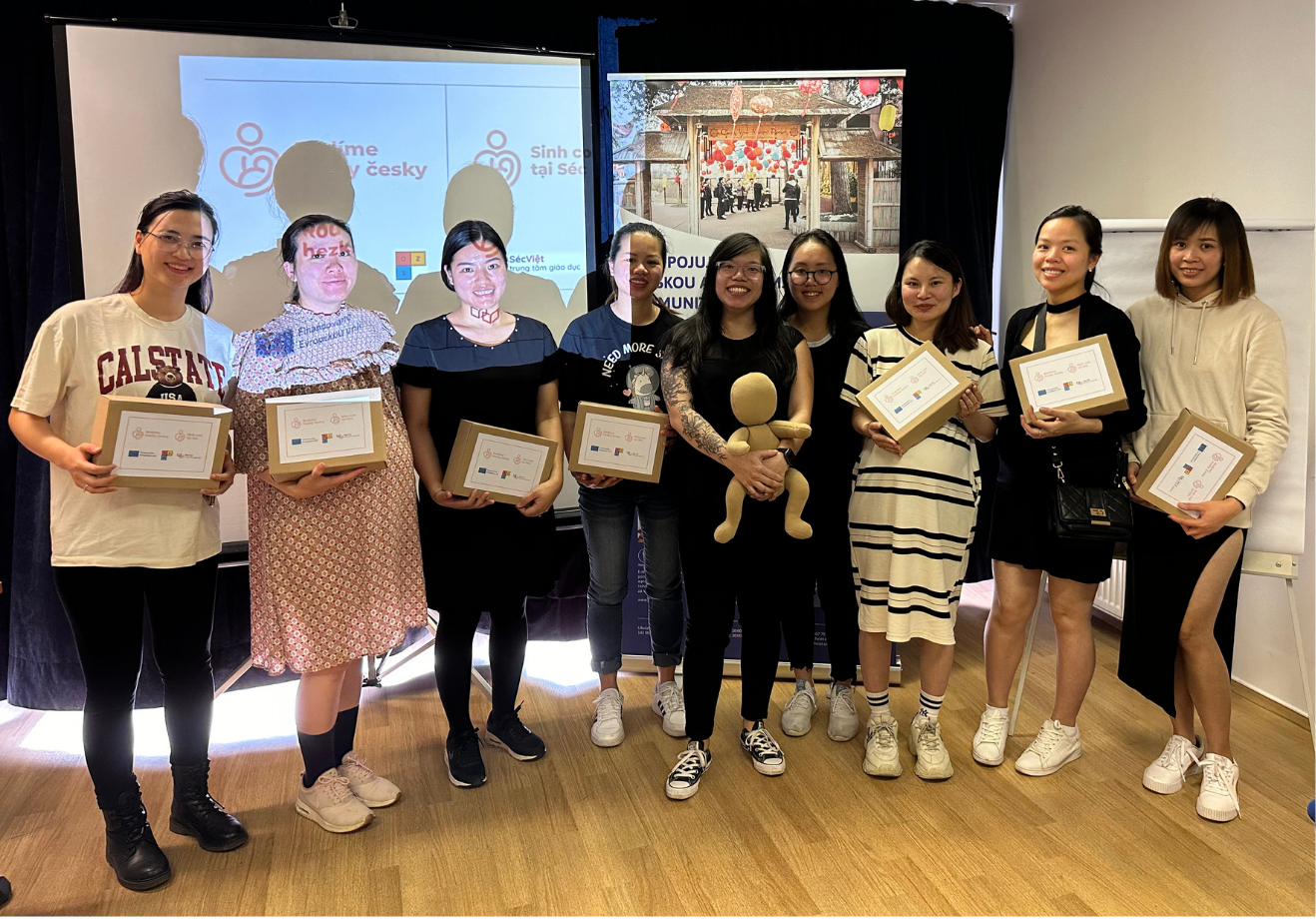 Projekt "Rodíme hezky česky" podporuje těhotné ženy vietnamského původu žijící v České republice. Nabízí předporodní kurzy a informační materiály ve vietnamštině, které pomáhají překonat jazykové a kulturní bariéry, porozumět českému systému zdravotní péče, usnadňují komunikaci se zdravotníky a připravují ženy na porod tak, aby ho mohly prožít klidně, důstojně a s pocitem jistoty.