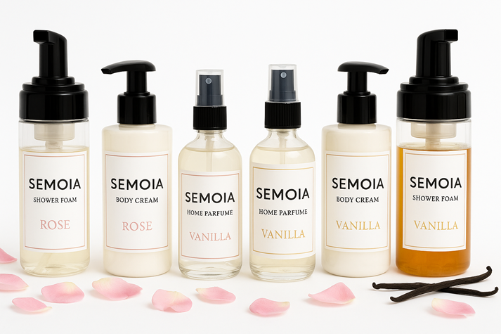 Semoia je česká značka, která staví vůni do hlavní role. Naše kosmetika pečuje o pokožku a zároveň mění atmosféru dne. Vyrábíme sprchové pěny, tělové krémy a interiérové vůně s vyšší koncentrací parfému, takže vydrží déle a vrací vás do pohody. Jednoduché vůně – růže a vanilka – lze kombinovat napříč produkty, aby váš každodenní rituál voněl stejně doma i na kůži.