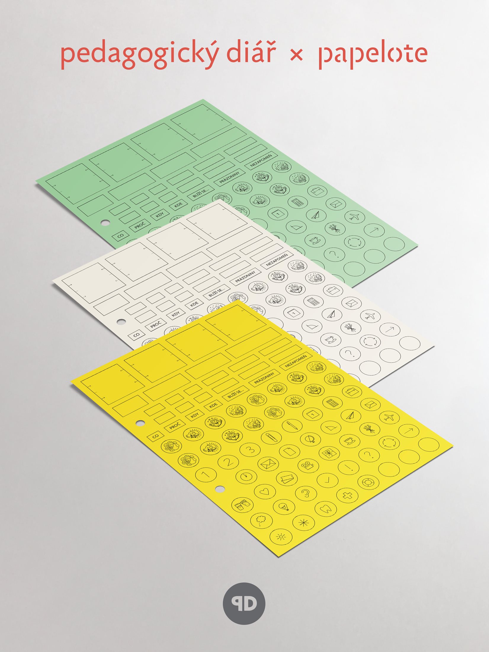 PD má praktický formát A5, rozevírací kroužkovou vazbu, papírovou kapsu na výukové materiály a gumičku, která udrží pohromadě nejen všechny poznámky, ale také fix, propisky a mobilní telefon. Díky kvalitním deskám z tzv. “veganské kůže” budete další školní roky moci dokupovat jen aktuální obsah, nikoliv celý diář. Najdete v něm umělecky zpracované antistresové omalovánky i velké množství samolepek, které pomohou s organizací a plánováním dílčích částí, ženám umožní plánovat dle svého cyklu, a navíc jdou použít jako rozřazovače, které si nalepíte přesně tam, kde to pro Vás má smysl.