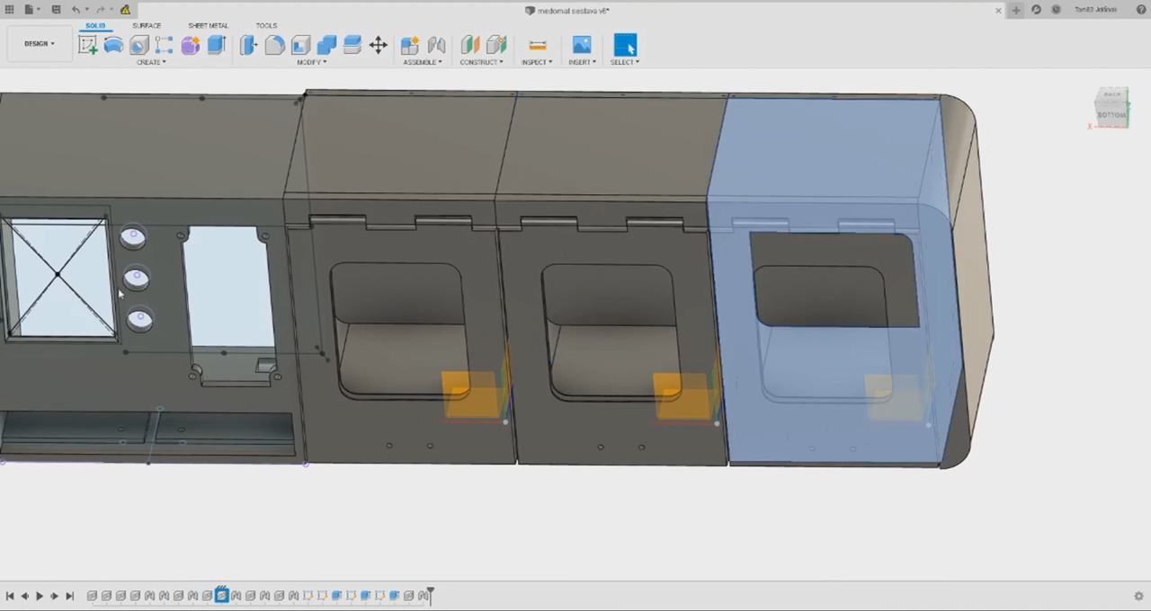 Asi nejdůležitější je modularita u mechanických dílů. Ty jsou navrženy tak, aby bylo možné sestavit jako libovolnou matici pozic na sklenice medu od 1×1 (tzn. na prodej pouze 1 sklenice) až po NxN. Předpokládám ale, že nejpoužívanější budou verze 1×2, 2×1, 1×3, 3×1, 3×2 a 2×3 případně 3×3.