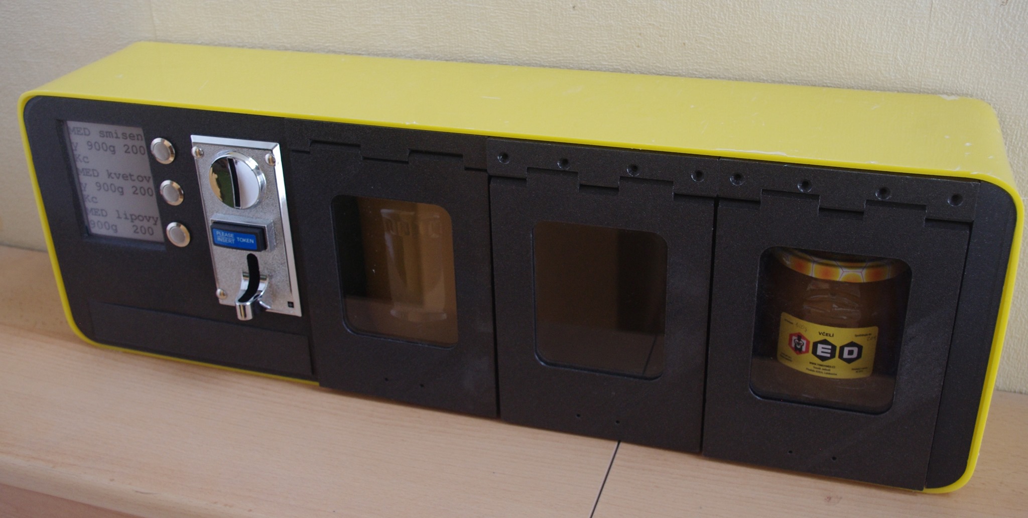 Celý medomat je velmi jednoduchý a při jeho konstrukci jsem se inspiroval výdejními místy některých e-shopů. Celé zařízení je postaveno tak, aby bylo co nejvíc modulární. Jde vlastně o takové Lego. Každý si může zvolit svoji vlastní, jedinečnou konfiguraci medomatu podle potřeb, které má.