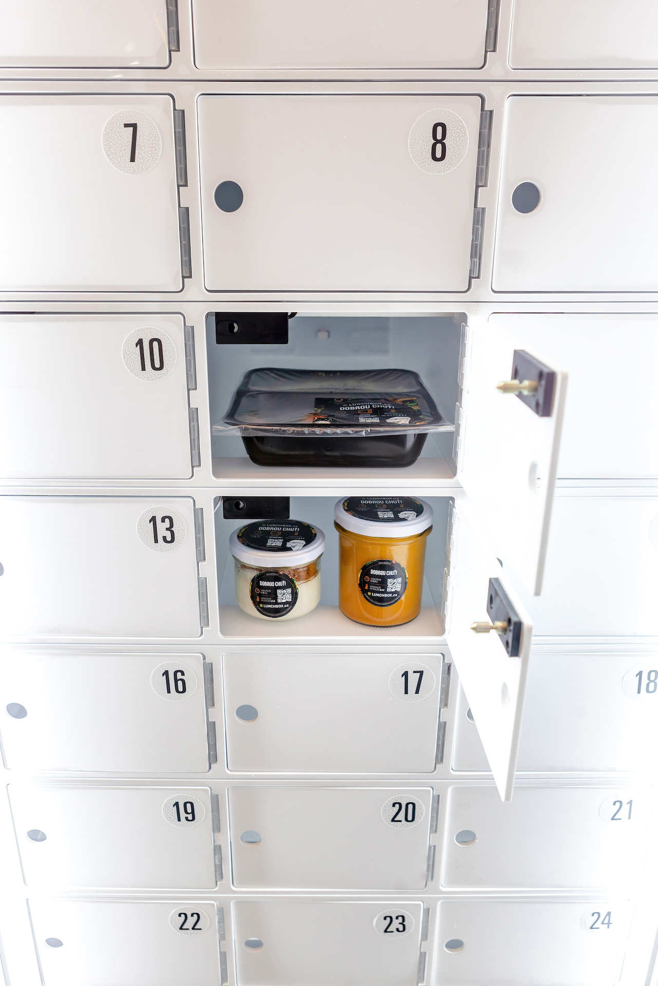 Unikátní samoobslužné řešení vyzvednutí pokrmů, splňující nejpřísnější HACCP normy na skladování potravin. Vaše jídlo nepřijde do kontaktu s objednávkou jiného zákazníka.